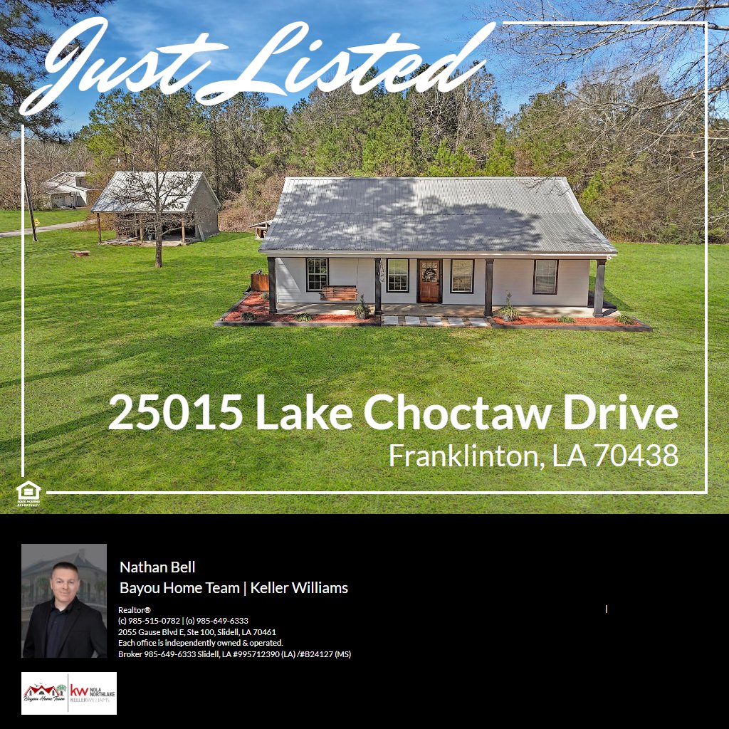 Discover your dream home at 25015 Lake Choctaw Dr, in Franklinton, LA! This spacious 4-bedroom, 2-bathroom gem offers 1,626 sqft of living space (2,380 sqft total) on a serene 1-acre lot surrounded by mature trees. Step inside to an inviting open floor plan featuring stylish polished concrete floors, perfect for modern living. Enjoy the outdoors year-round with a recently added oversized covered patio, extending from the charming front porch. Need space for projects? The 600 sqft workshop with electricity is ready for your hobbies or storage needs. With ample room inside and out, this property blends comfort and versatility in a tranquil Louisiana setting. Schedule your showing today!